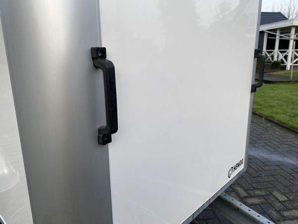 Twee jaar geleden verkochten we een prachtige Henra gesloten wagen van het nieuwe model. Toentertijd een van de eerste tweedehands die te koop werd aangeboden. Nu anno 2021 zijn deze modellen tweedehands bijna niet te vinden, ook wel te begrijpen want het zijn prachtige wagens die je niet snel weg doet. Gelukkig waren we in de gelegenheid deze weer terug te kopen van de klant, hij werd te weinig gebruikt! Deze Henra gesloten Aanhangwagen heeft: * Gladde polyester-schuim wanden van 25mm dik, welke zeer geschikt zijn voor belettering, * Ronde hoekprofielen voor aerodynamisch design, * Robuust chassis, * Extra lange dissel met zeer goede rijeigenschappen, * RVS hang en sluitwerk, * Dubbele achterdeuren met containersluiting en slot, * Led binnenverlichting, * Anti-diefstal scharnier, * Handgrepen voorzijde aanhangwagen, * Regengoot, * 8 Bindpunten in v-rand langs de zijden en 3 aan de voorkant. * Deurvastzetters, * Vloerplaat met antislip, * v-dissel met oplooprem, * Disselslot (vorkslot) met SCM gekeurd slot. * Ledbreedtelampen, * Zwaar neuswiel. Totaal max gewicht 1350 kg Afmetingen 2.65 x 1.38 x 1.60 Netto laadvermogen 950 kg Bj 12-2017. Wagen is incidenteel gebruikt.